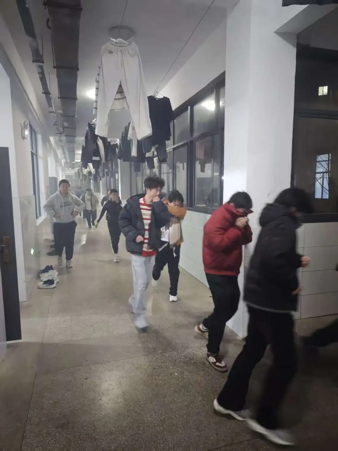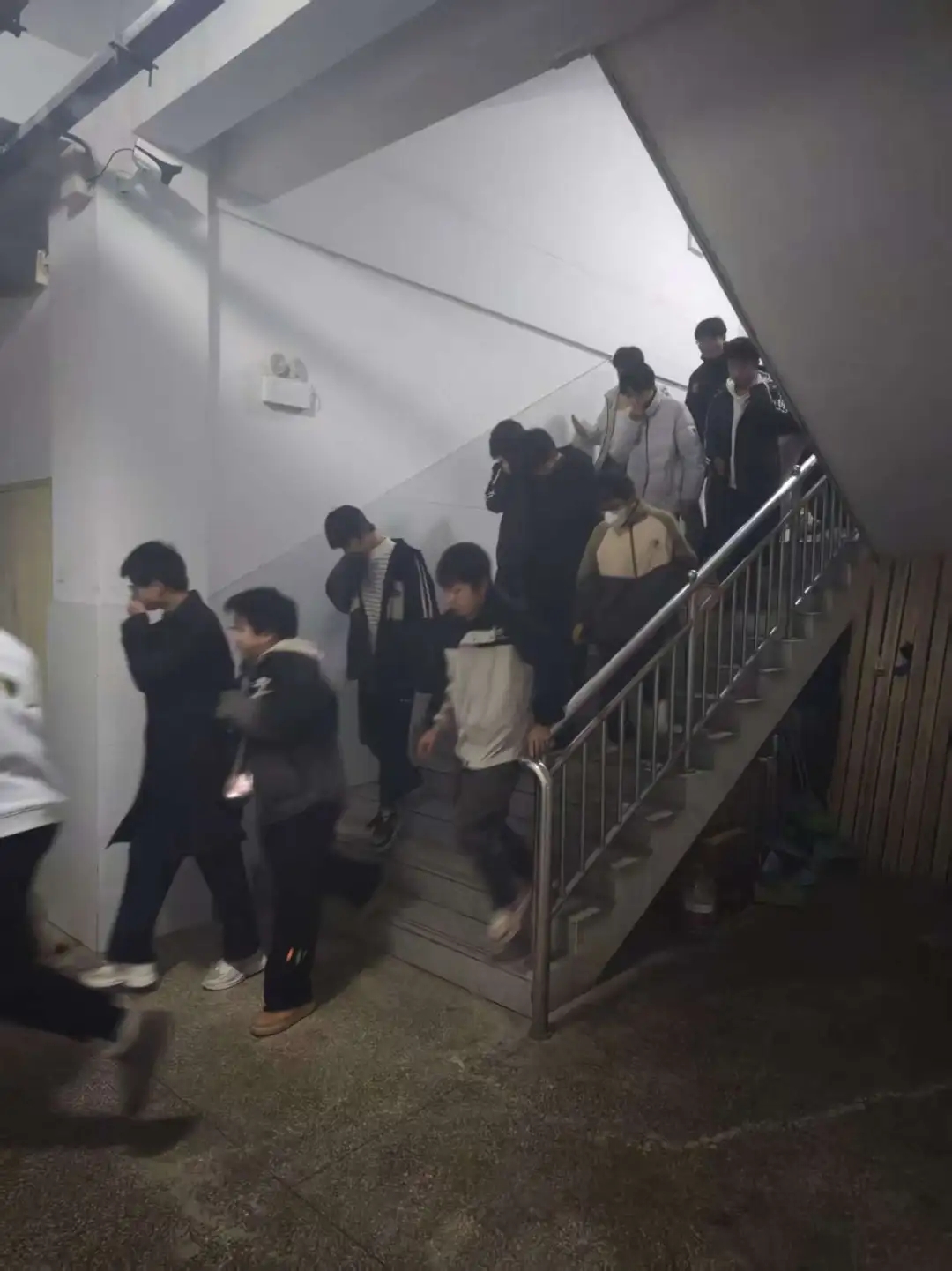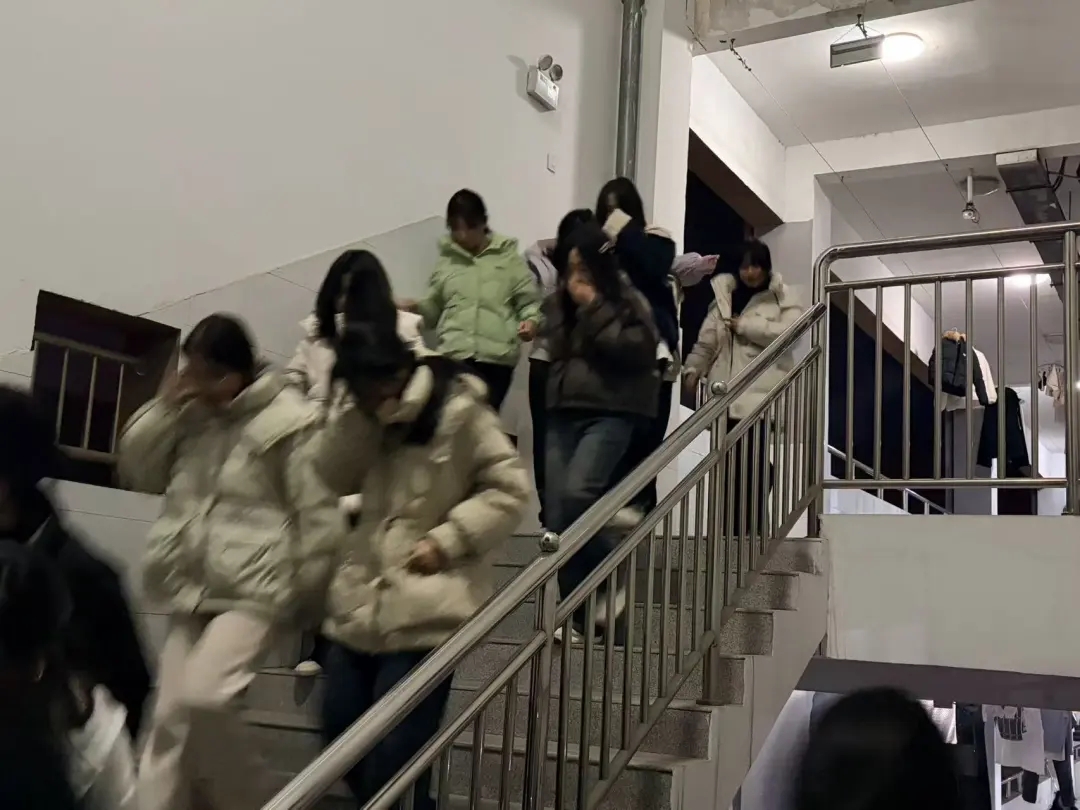 警报响起的瞬间,各班主任、宿管老师第一时间响应,迅速赶到宿舍,按照预设的疏散路线,引导学生用湿毛巾捂住口鼻,弯腰低姿,沿着墙壁快速、有序地向校园指定的安全疏散集合点撤离。过程中,老师们不断提醒学生 “不要拥挤,注意脚下安全”“保持秩序,快速通过”,整个疏散环节紧张而不混乱。