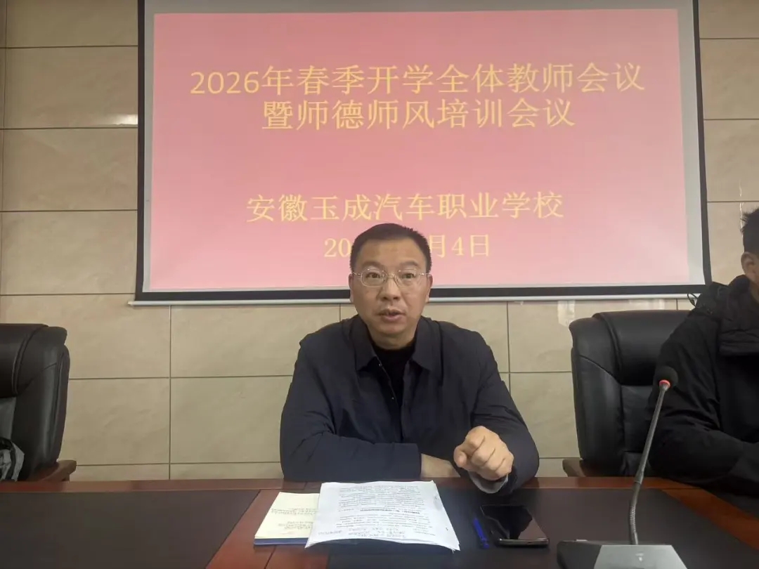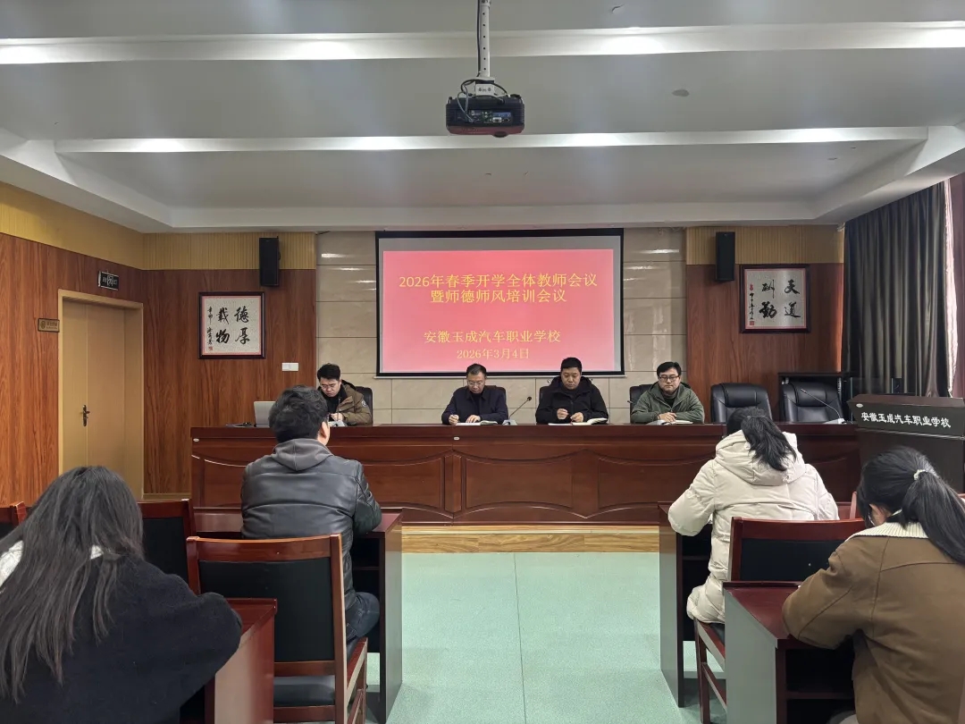 新的学期,新的征程,新的使命。玉成职校全体教师将以此次会议为契机,牢记育人初心,恪守师德规范,聚焦“提质培优”核心目标,以更加饱满的热情、更加务实的作风,深耕教学、潜心育人,严抓常规、深化改革,共同推动学校教育教学工作高质量发展,为培养更多优秀的人才而不懈奋斗!